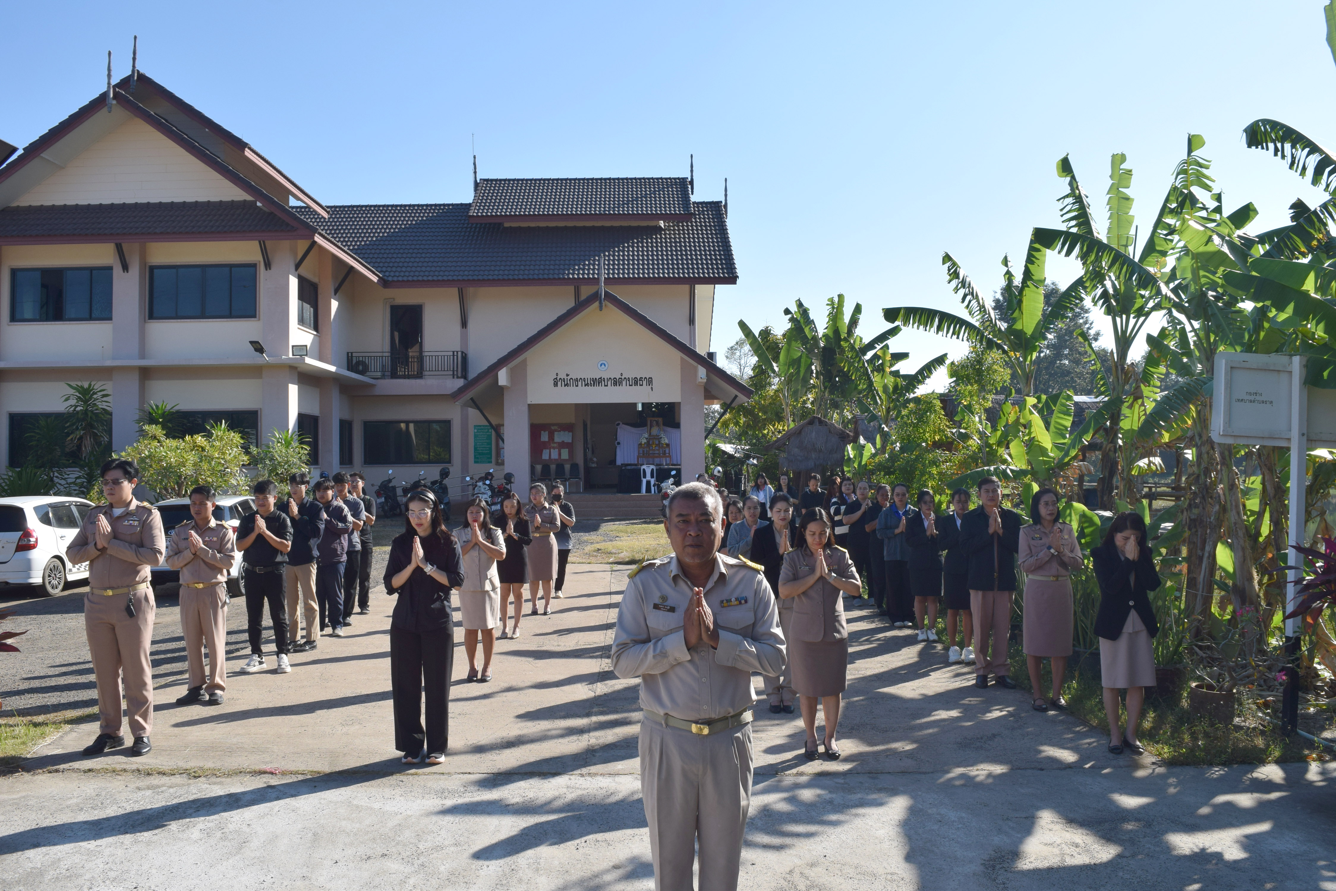 วันจันทร์, 01 ธันวาคม 2568 09:46ในวันที่ 1 ธันวาคม 2568 กิจกรรมเคารพธงชาติ เวลา 08.00 น. บริเวณเสาธงหน้าสำนักงานเทศบาลตำบลธาตุ ร้องเพลงชาติไทย ไหว้พระสวดมนต์ เพื่อความสมัครสมานสามัคคีของคนไทย และเกิดความรักชาติ พร้อมรับฟังนโยบายการปฏิบัติงาน จากนายพงศกร ควรรู้ดี ปลัดเทศบาลตำบลธาตุ ☎️ติดต่อข้อมูลเพิ่มเติมที่ โทร .045-210-224