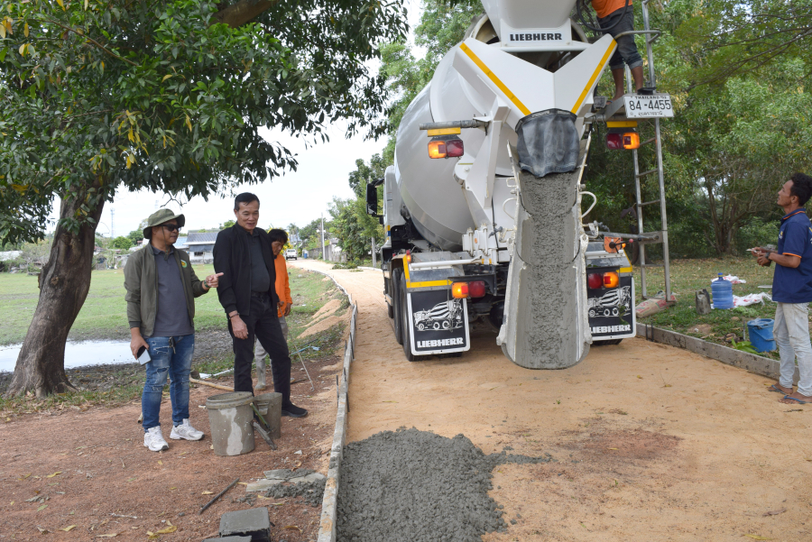 ตรวจงานโครงการก่อสร้างถนนคอนกรีตเสริมเหล็ก ซอยทาระบุตร หมู่ที่ 1 บ้านหนองโก ตำบลธาตุ อำเภอวารินชำราบ จังหวัดอุบลราชธานี