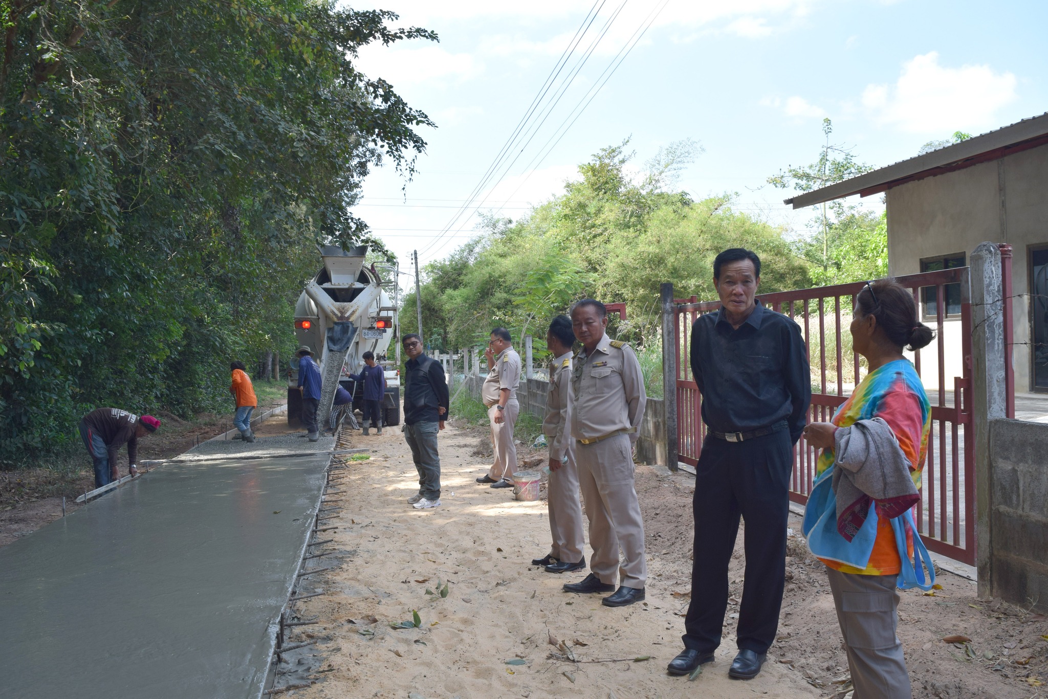 ลงพื้นที่ตรวจสอบความเรียบร้อยการดำเนินการก่อสร้างถนนคอนกรีตเสริมเหล็ก ซอยหลังวัดป่าโกศล หมู่ที่ 10 บ้านโนนสมบูรณ์ ตำบลธาตุ อำเภอวารินชำราบ จังหวัดอุบลราชธานี