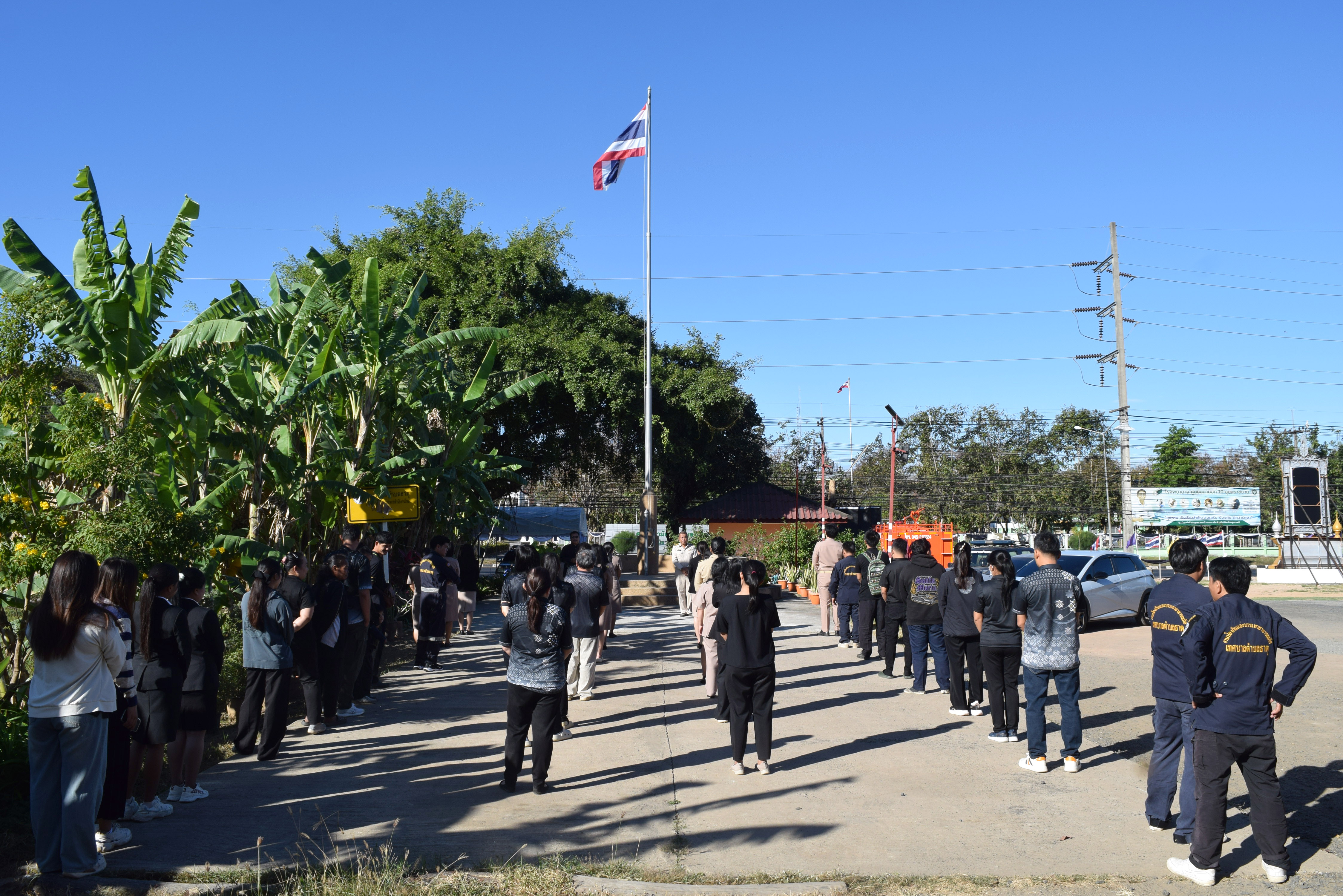 กิจกรรมเคารพธงชาติ เวลา 08.00 น. บริเวณเสาธงหน้าสำนักงานเทศบาลตำบลธาตุ