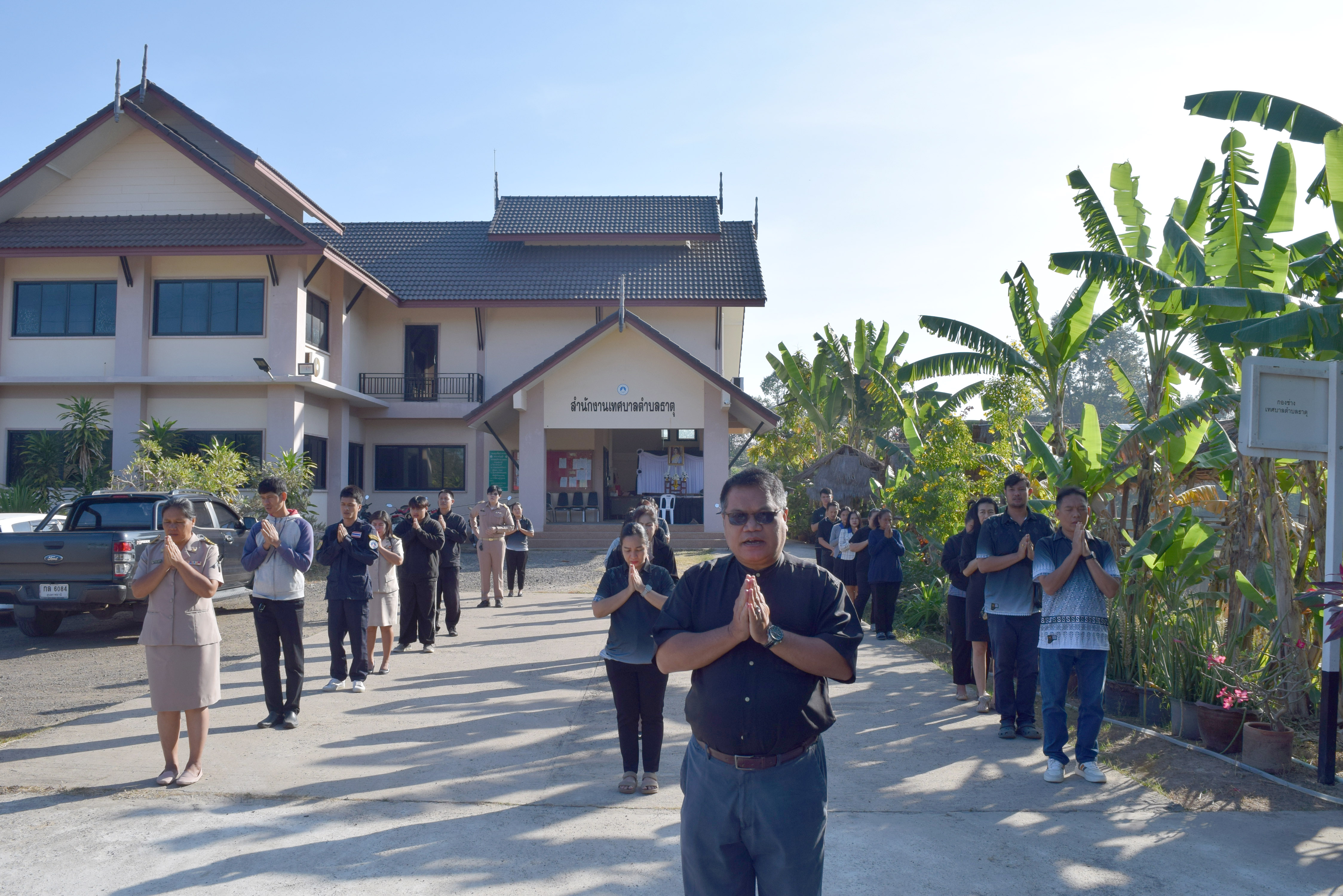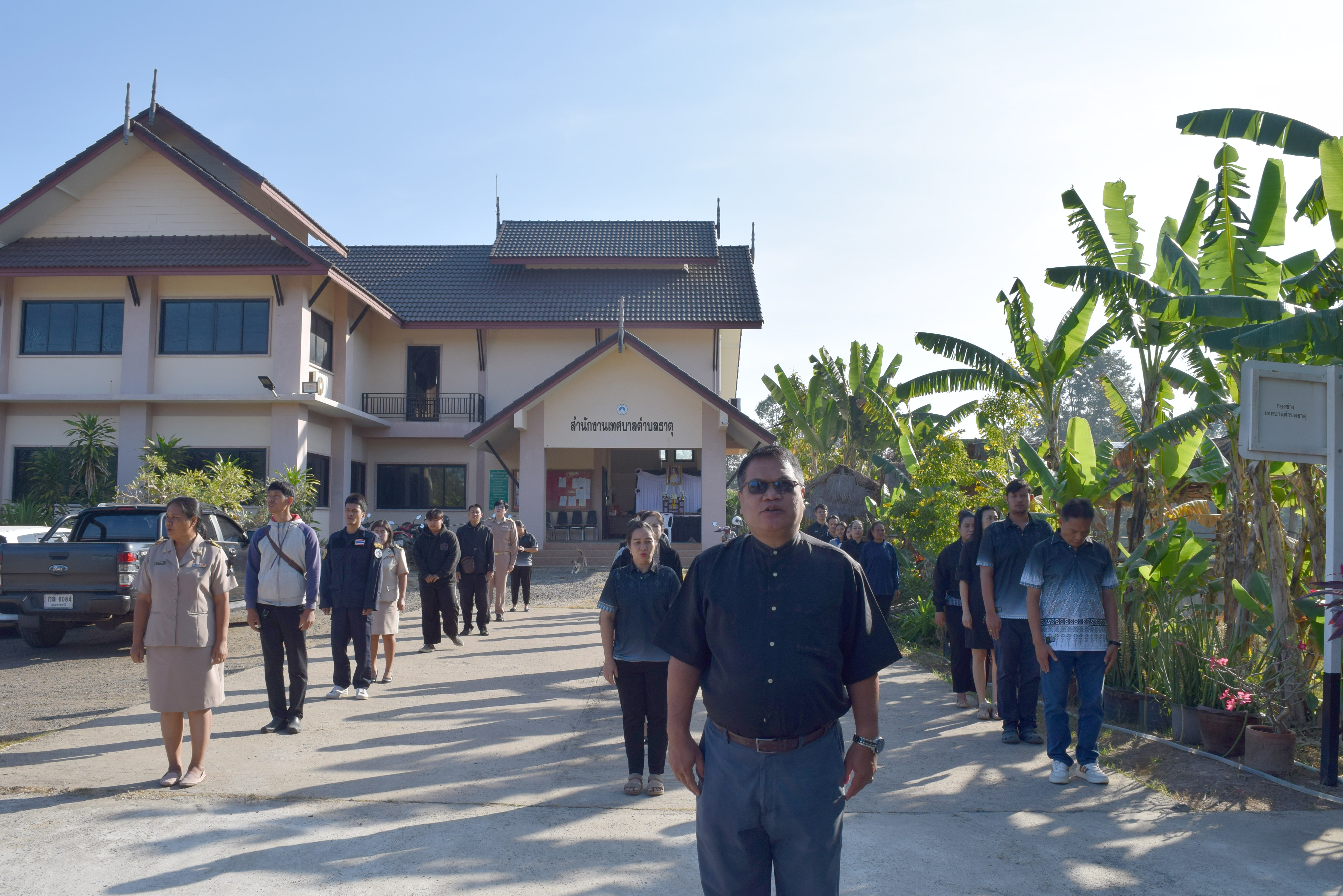 กิจกรรมเคารพธงชาติ เวลา 08.00 น. บริเวณเสาธงหน้าสำนักงานเทศบาลตำบลธาตุ