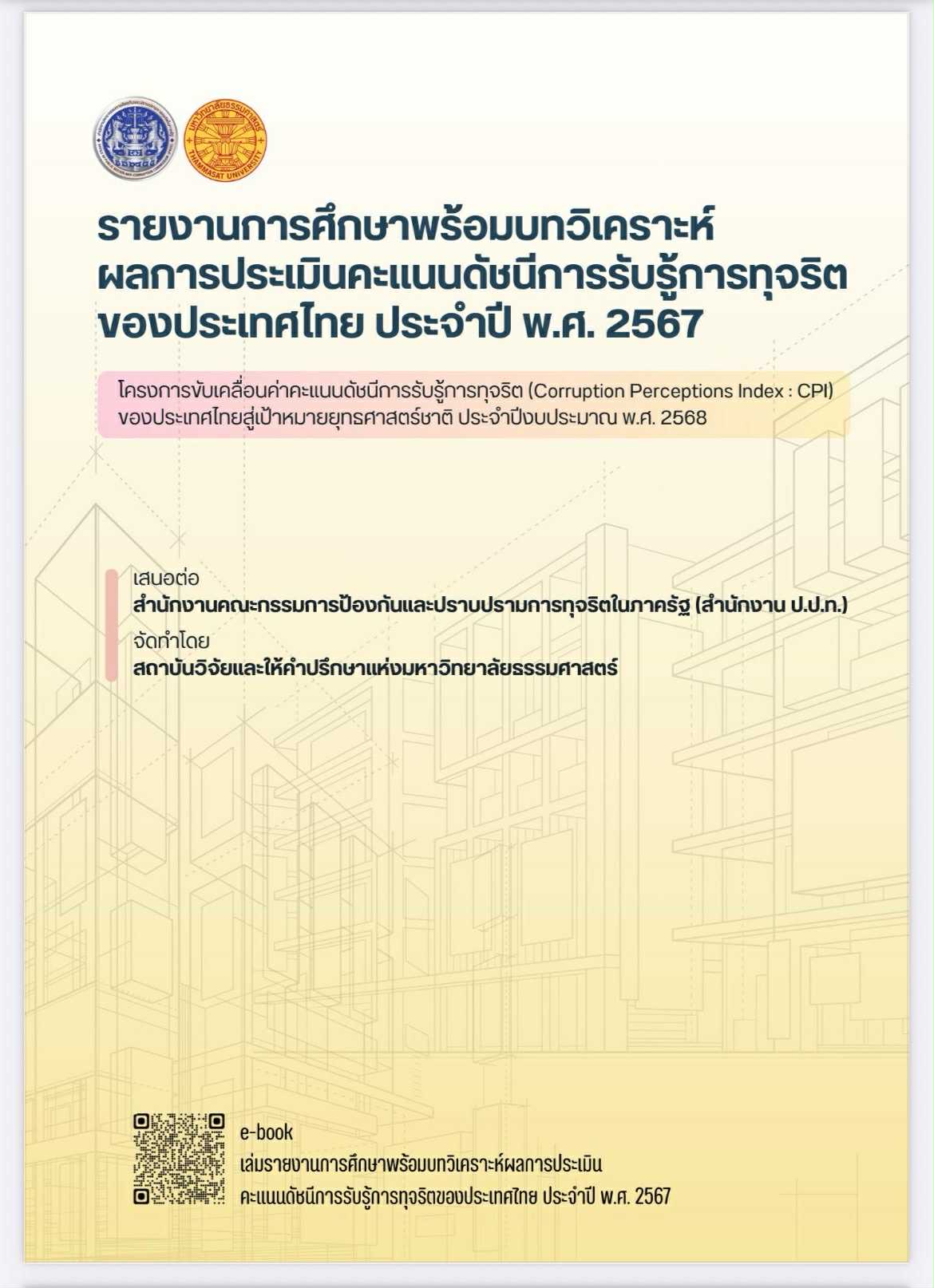ประชาสัมพันธ์รายงานผลการศึกษา และสื่อประชาสัมพันธ์ในการยกระดับ ค่าคะแนน CPI ผู้ที่สนใจอ่านรายละเอียดรายงานผลสามารถสแกนอ่าน E-Book พร้อมสื่อวีดิทัศน์ CPI (ป.ป.ท.)