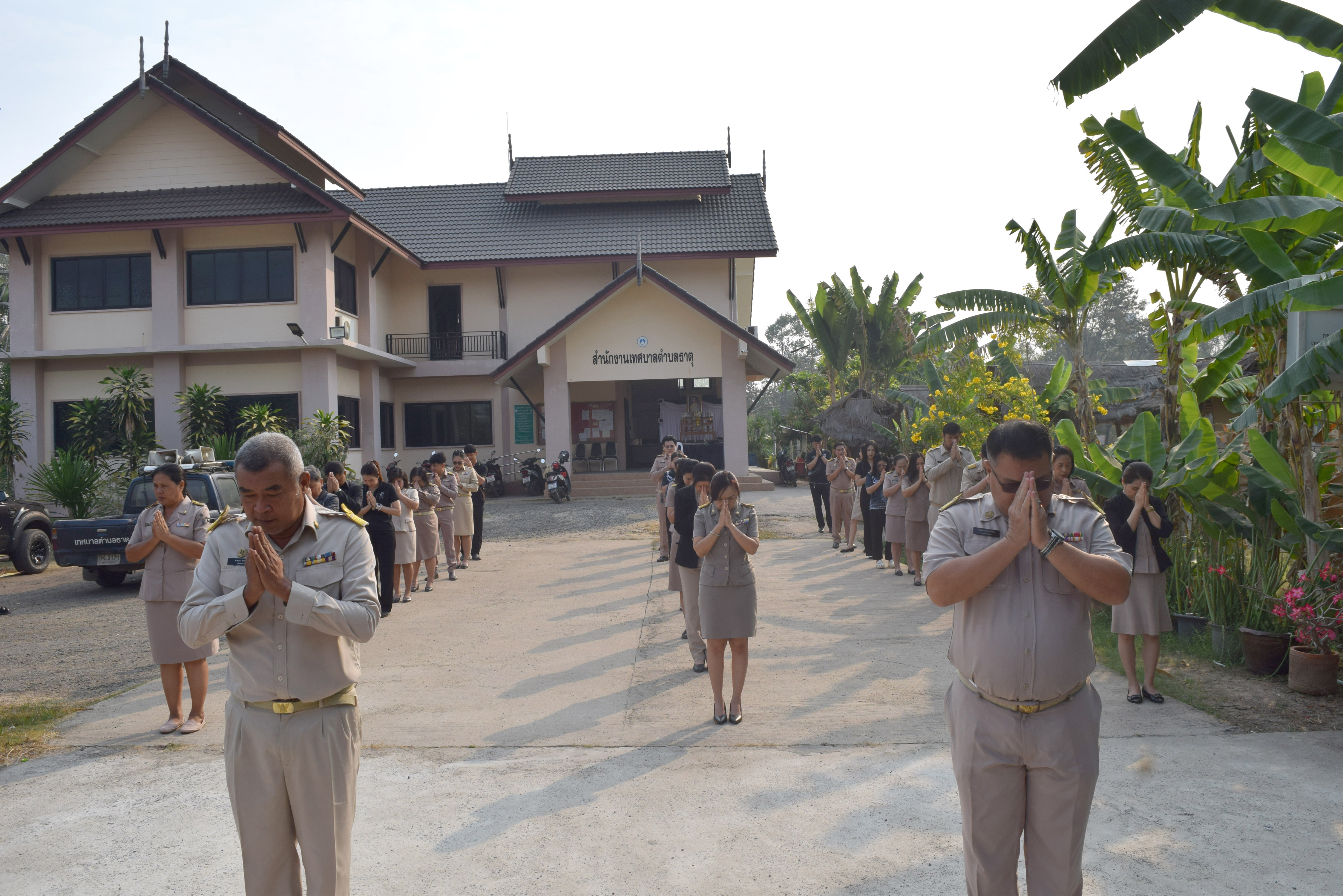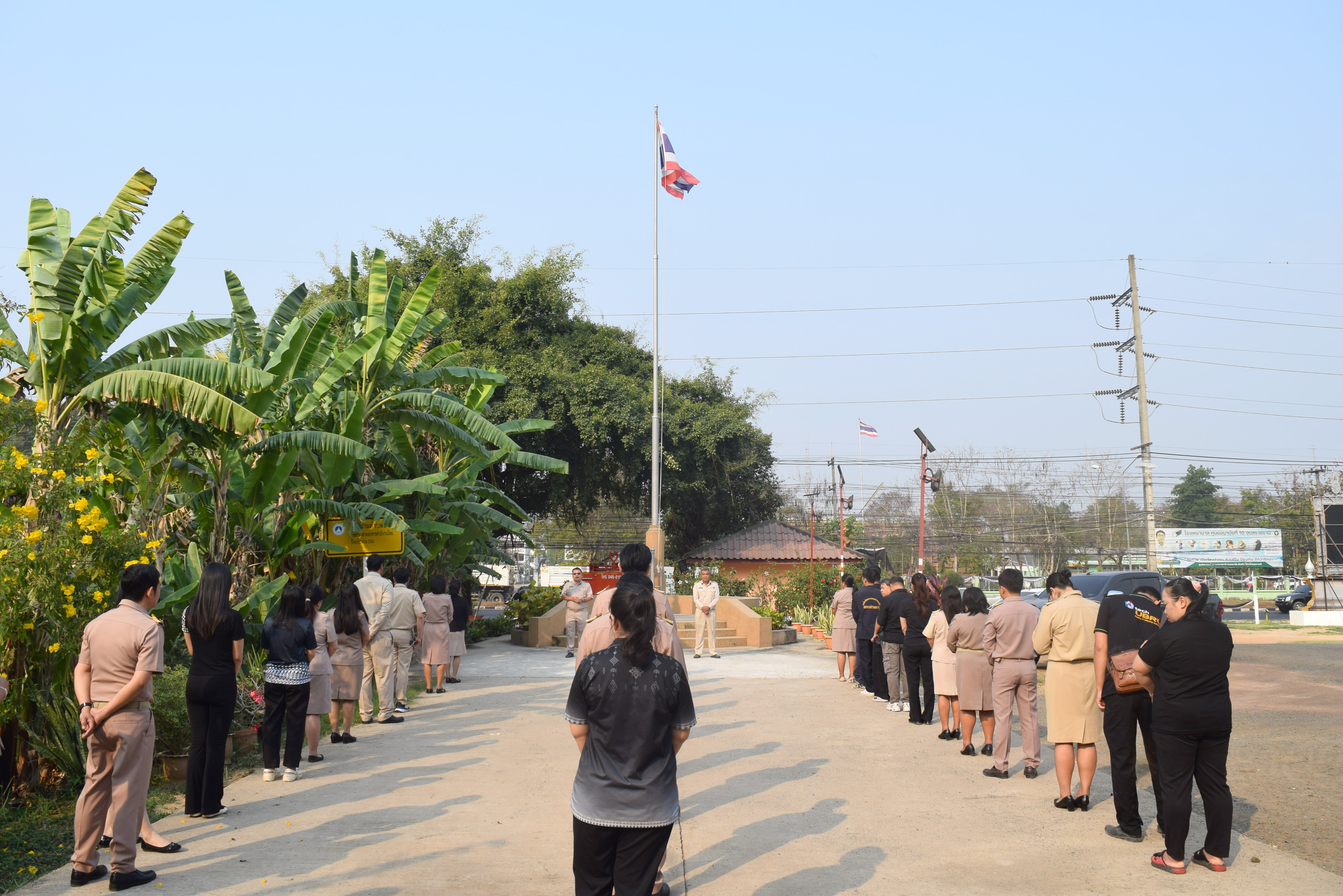 กิจกรรมเคารพธงชาติ เวลา 08.00 น. บริเวณเสาธงหน้าสำนักงานเทศบาลตำบลธาตุ