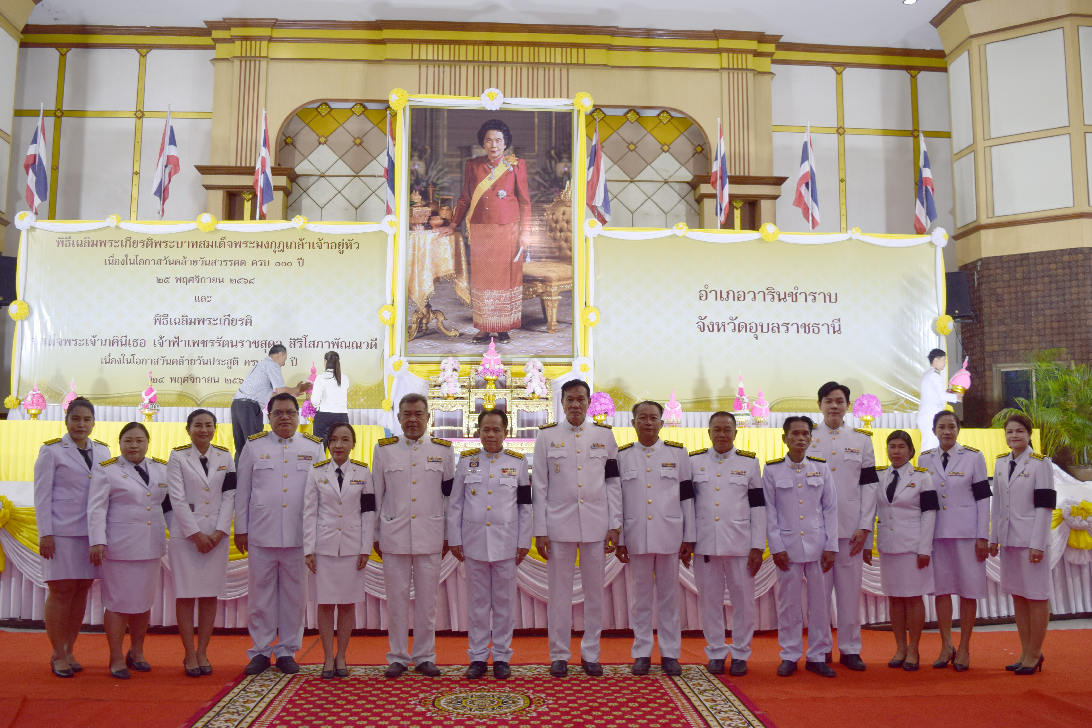 วันอังคาร, 25 พฤศจิกายน 2568 16:13ในวันที่ 25 พฤศจิกายน 2568 .เทศบาลตำบลธาตุ นำโดย จ.ส.อ.ประสิทธิ์ หอมจันทร์ นายกเทศมนตรีตำบลธาตุ คณะผู้บริหาร หัวหน้าส่วนราชการ และพนักงานเทศบาล เข้าร่วมกิจกรรมเฉลิมพระเกียรติพระบาทสมเด็จพระมงกุฎเกล้าเจ้าอยู่หัว เนื่องในโอกาสวันคล้ายวันสวรรคต ครบ 100 ปี 25 พฤศจิกายน 2568 และกิจกรรมเฉลิมพระเกียรติสมเด็จพระเจ้าภคินีเธอ เจ้าฟ้าเพชรรัตนราชสุดา สิริโสภาพัณณวดี เนื่องในโอกาสวันคล้ายวันประสูติ ครบ 100 ปี 24 พฤศจิกายน 2568 ….มีกิจกรรม 3 ช่วง ดังนี้ 1.พิธีเจริญพระพุทธมนต์และทำบุญตักบาตรถวายพระราชกุศล 2.พิธีวางพวงมาลาถวายราชสักการะ พระบาทสมเด็จพระมงกุฏเกล้าเจ้าอยู่หัว 3.พิธีวางพานพุ่มดอกไม้ถวายราชสักการะ สมเด็จพระเจ้าภคินีเธอ เจ้าฟ้าเพชรรัตนราชสุดา สิริโสภาพัณณวดี …โดย นายอุดมศักดิ์ นวลศิริ นายอำเภอวารินชำราบ เป็นประธานในกิจกรรมฯ ณ หอประชุมประชาวาริน ตำบลวารินชำราบ อำเภอวารินชำราบ จังหวัดอุบลราชธานี ☎️ติดต่อข้อมูลเพิ่มเติมที่ โทร .045-210-224