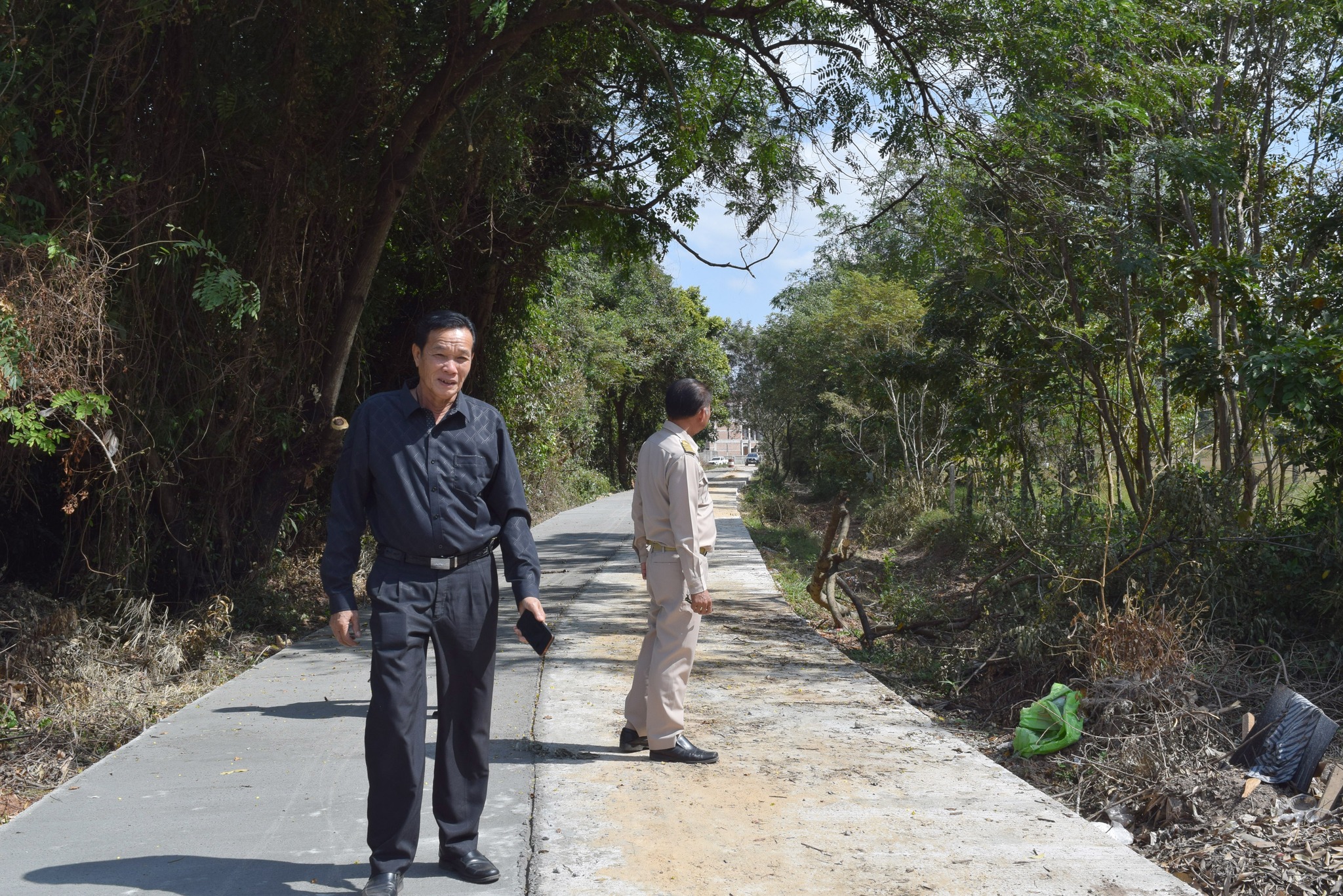 ลงพื้นที่ตรวจสอบความเรียบร้อยการดำเนินการก่อสร้างถนนคอนกรีตเสริมเหล็ก ซอยข้างสนามกีฬาฝั่งทิศเหนือ ช่วงที่ 2 หมู่ที่ 3 บ้านเก่าน้อย ตำบลธาตุ อำเภอวารินชำราบ จังหวัดอุบลราชธานี