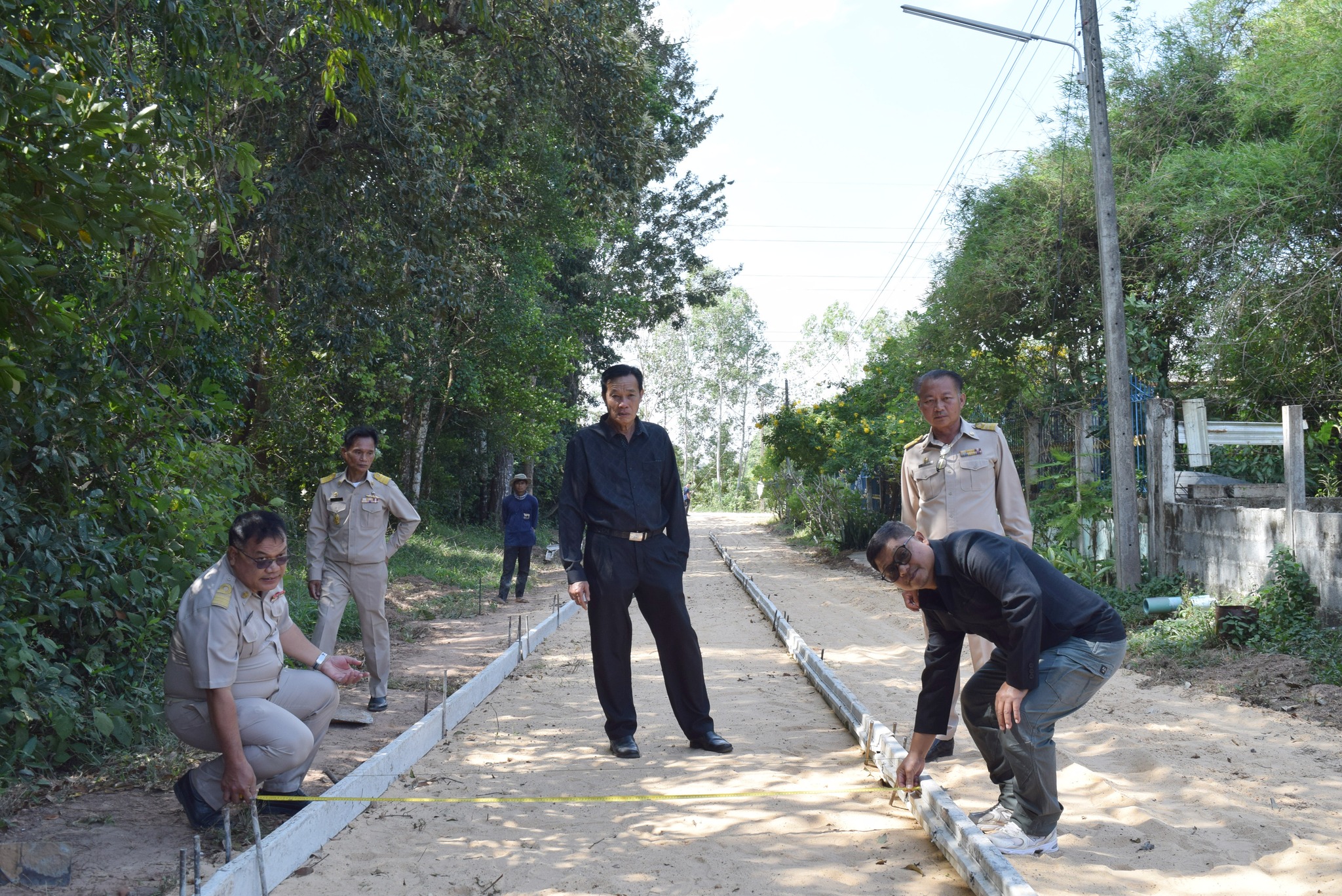 ลงพื้นที่ตรวจสอบความเรียบร้อยการดำเนินการก่อสร้างถนนคอนกรีตเสริมเหล็ก ซอยหลังวัดป่าโกศล หมู่ที่ 10 บ้านโนนสมบูรณ์ ตำบลธาตุ อำเภอวารินชำราบ จังหวัดอุบลราชธานี