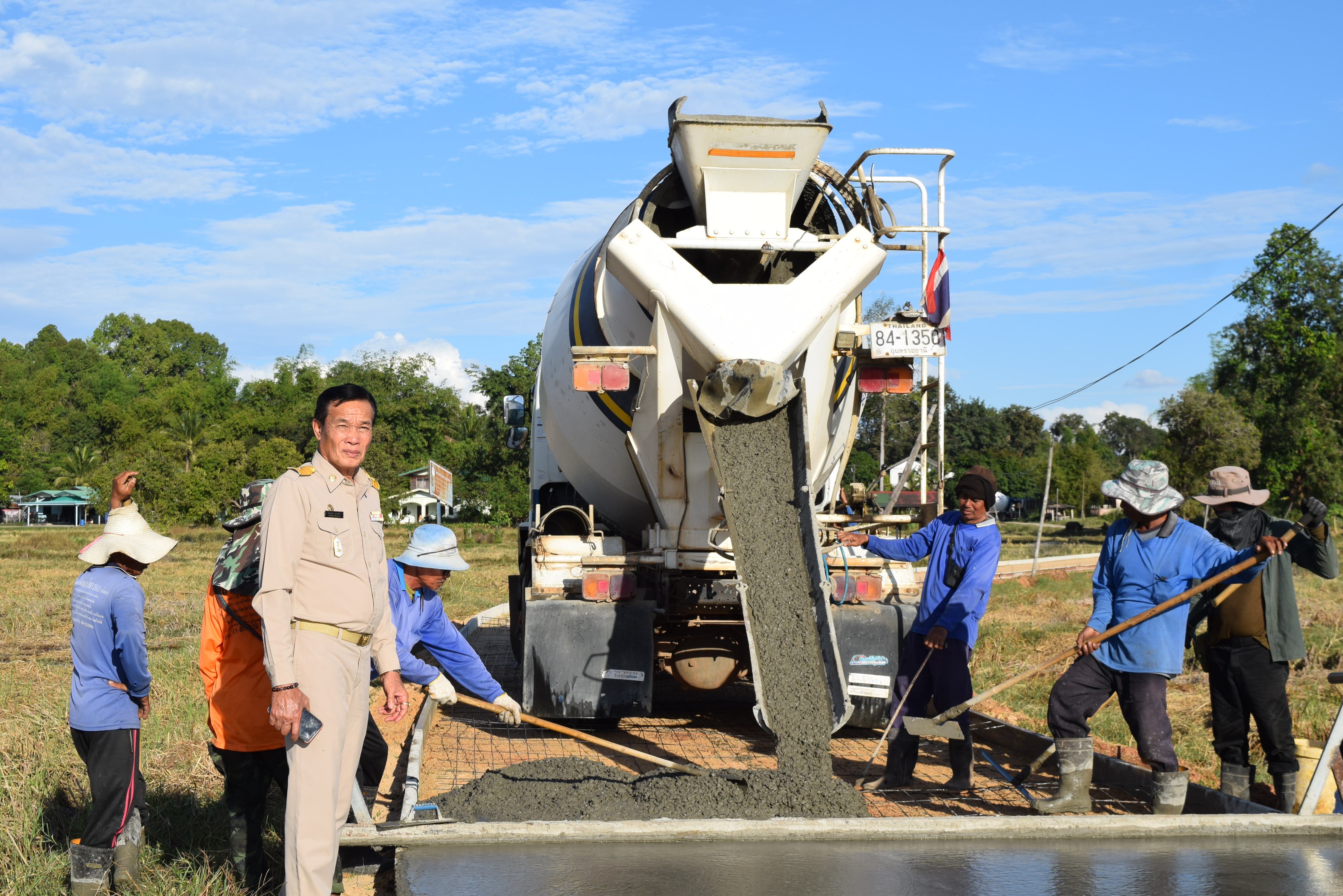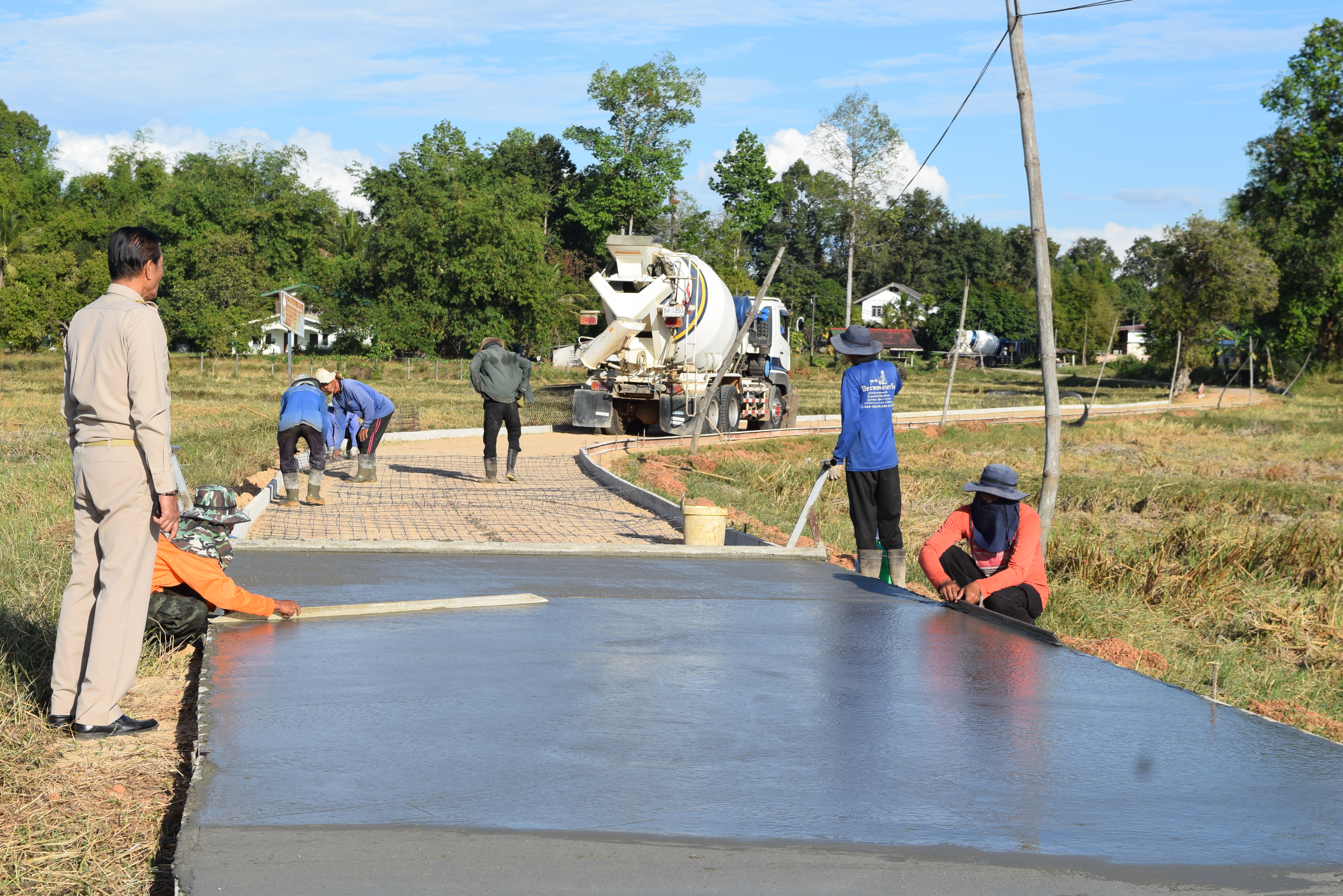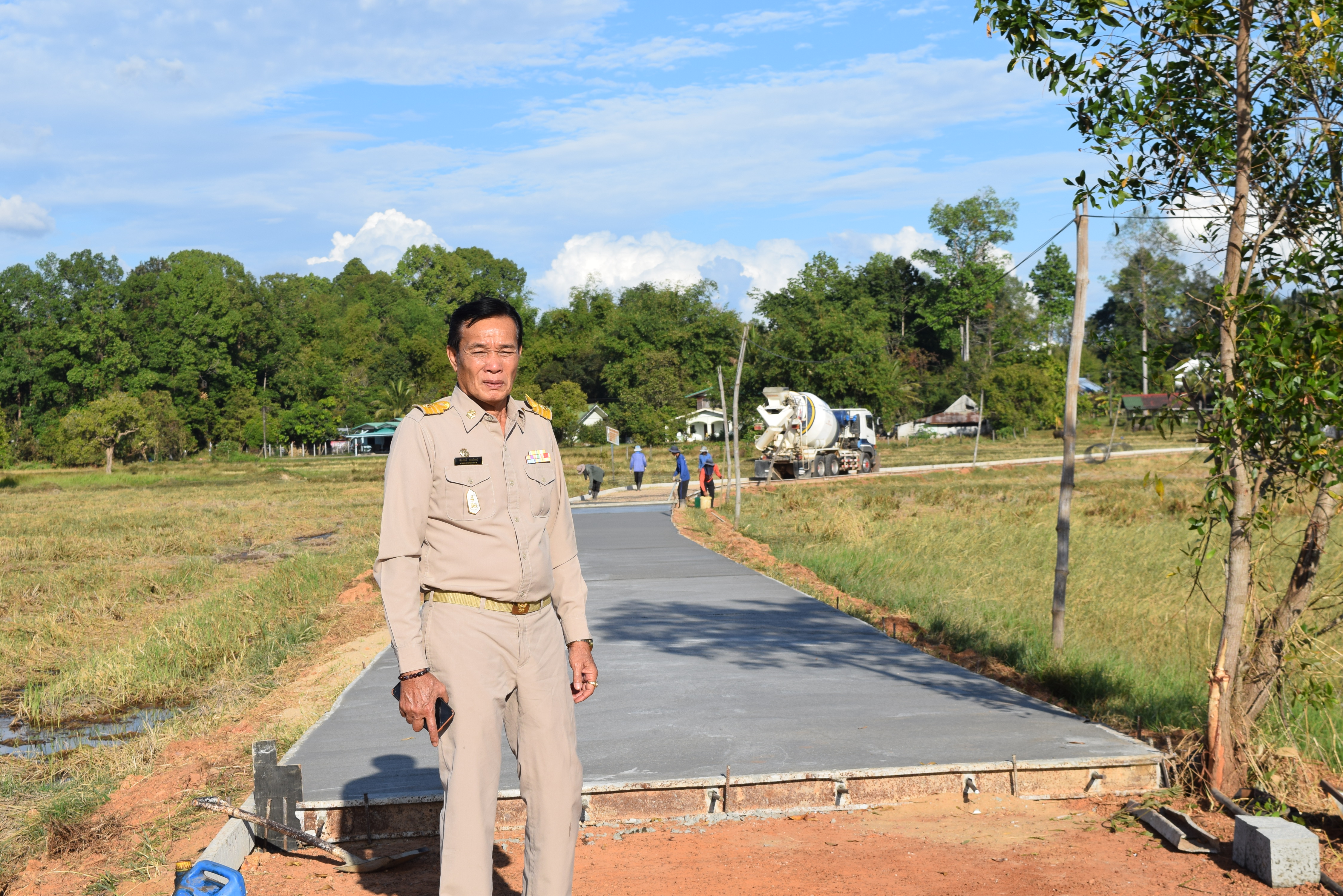 ลงพื้นที่ตรวจสอบความเรียบร้อยการดำเนินการก่อสร้างถนนคอนกรีตเสริมเหล็ก ซอยศาลากลางบ้านไปหนอง 99 ช่วงที่ 2 หมู่ที่ 6 บ้านทุ่งเดิ่น ตำบลธาตุ อำเภอวารินชำราบ จังหวัดอุบลราชธานี