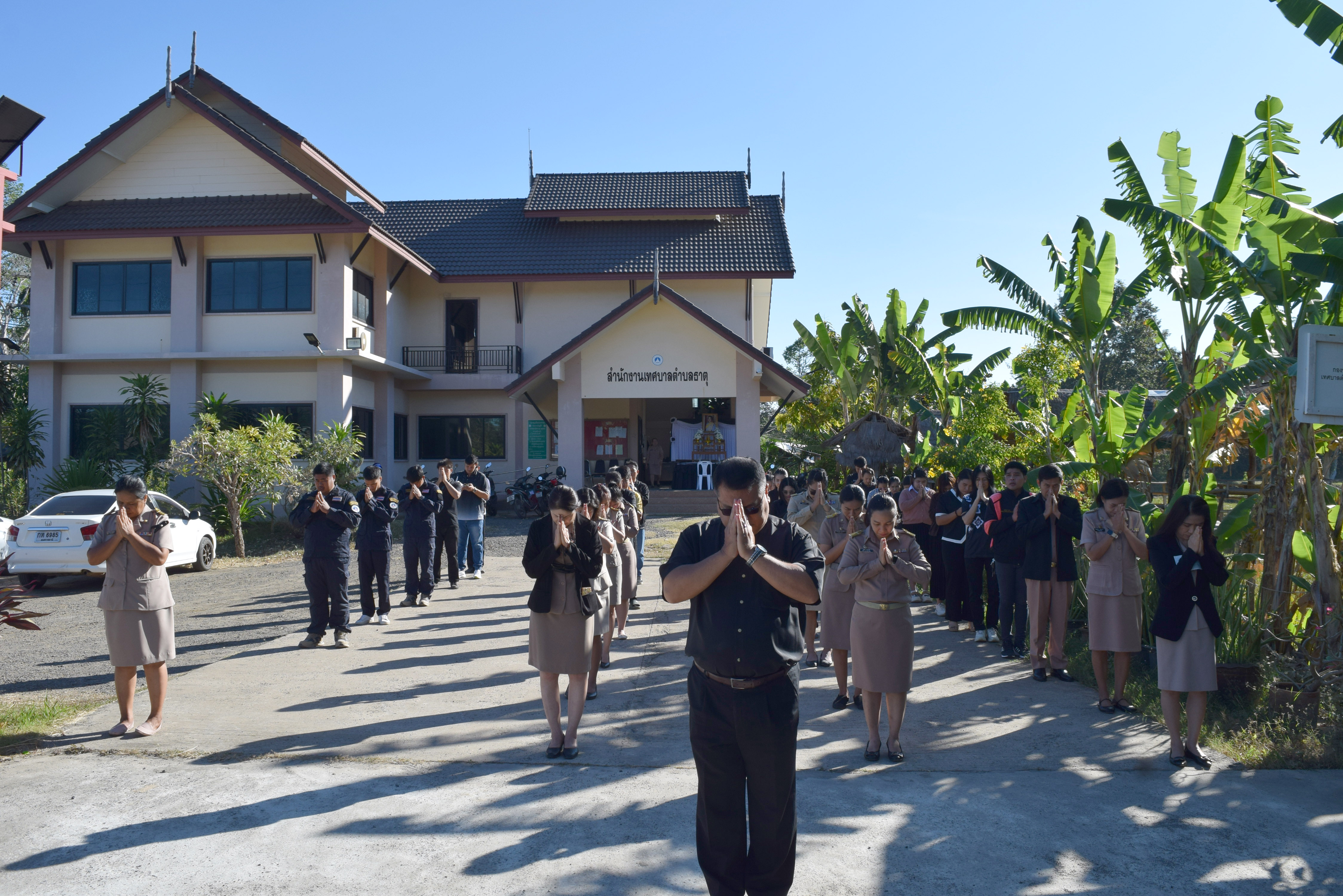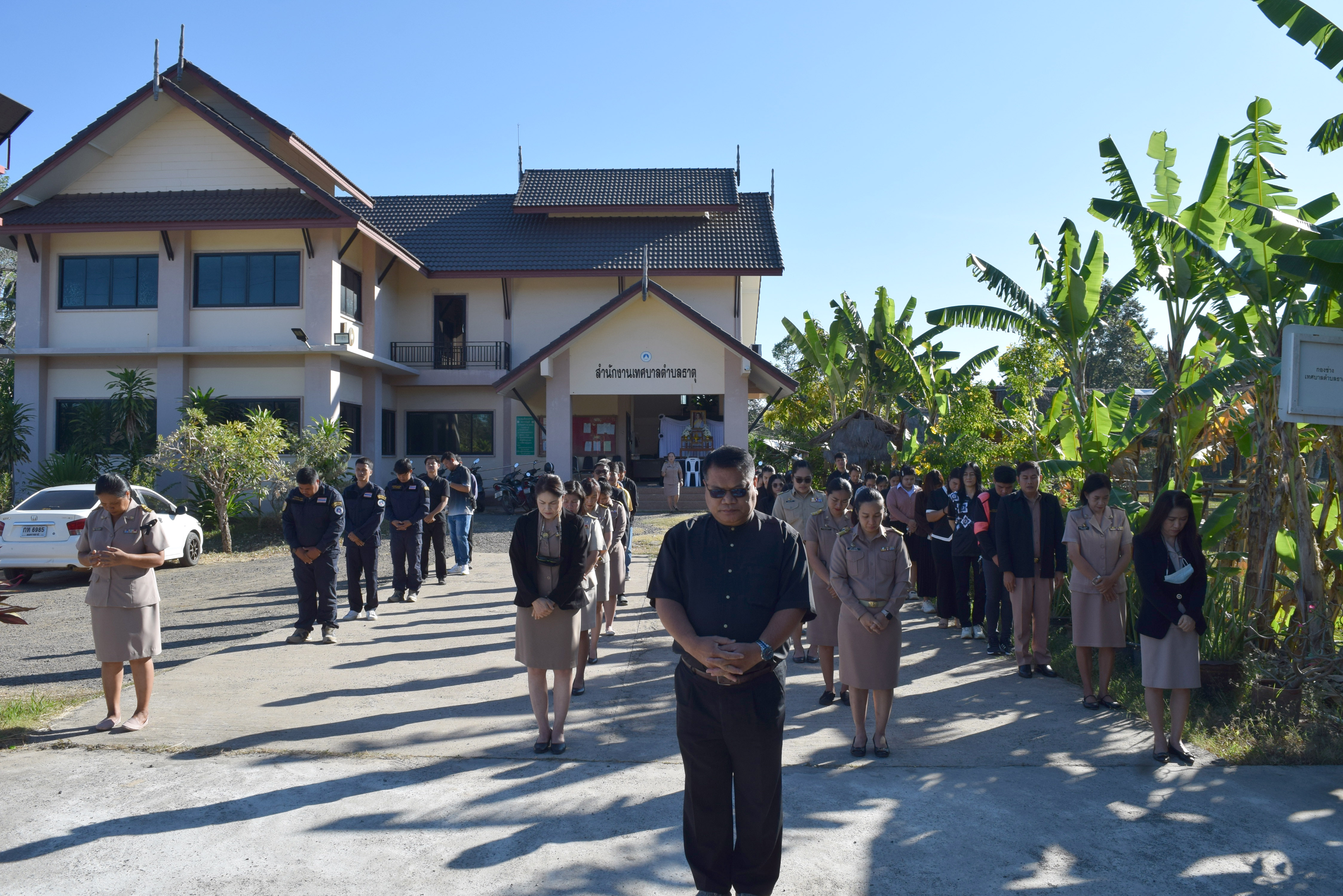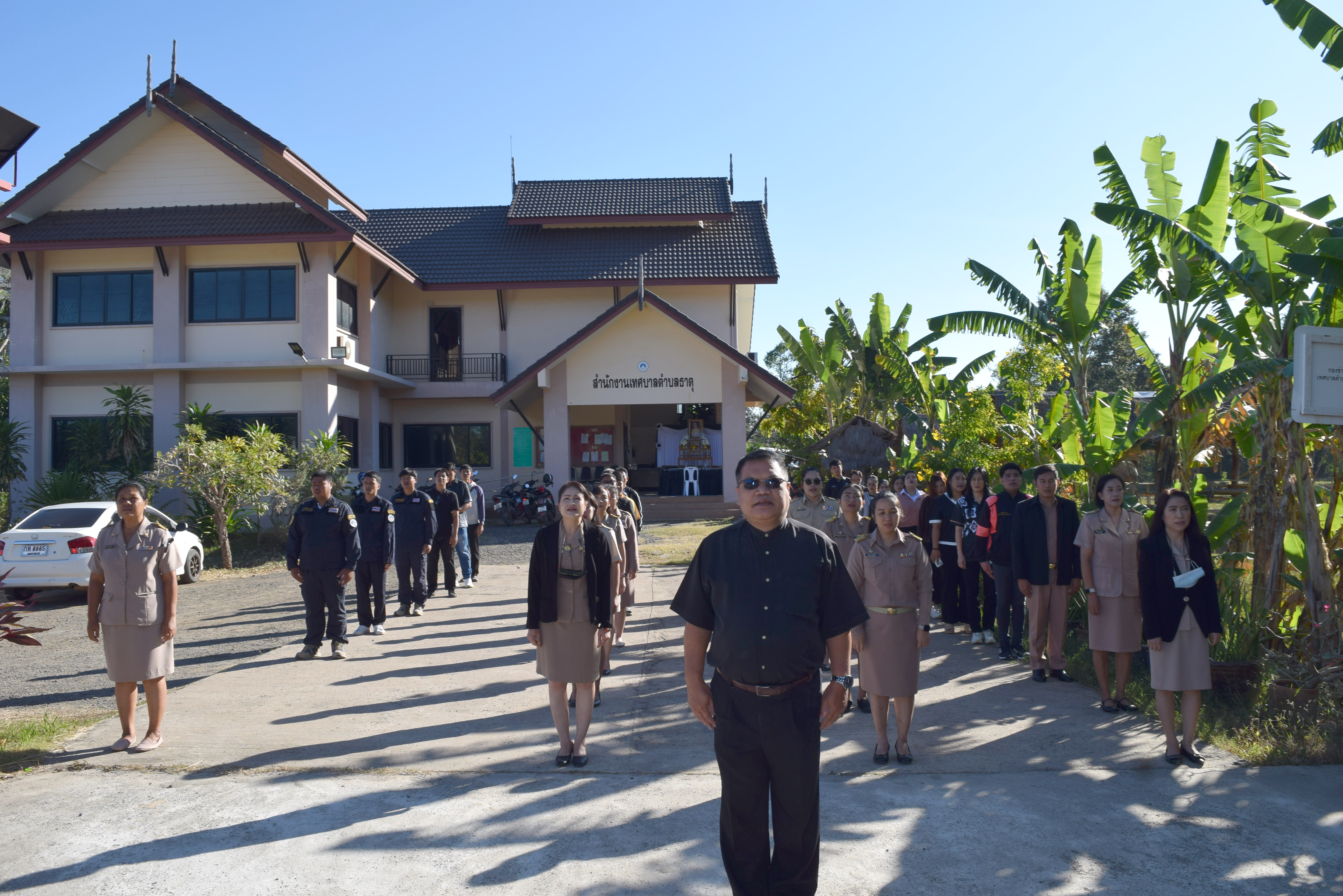 กิจกรรมเคารพธงชาติ เวลา 08.00 น. บริเวณเสาธงหน้าสำนักงานเทศบาลตำบลธาตุ